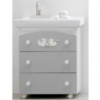 Dispone di 4 ampi cassetti con sistema Soft Closing, lavabo, portasapone e fasciatoio con rivestimento in plastica che, grazie ad un semplice meccanismo, si rimuove per trasformare la vasca in una bella e pratica cassettiera.